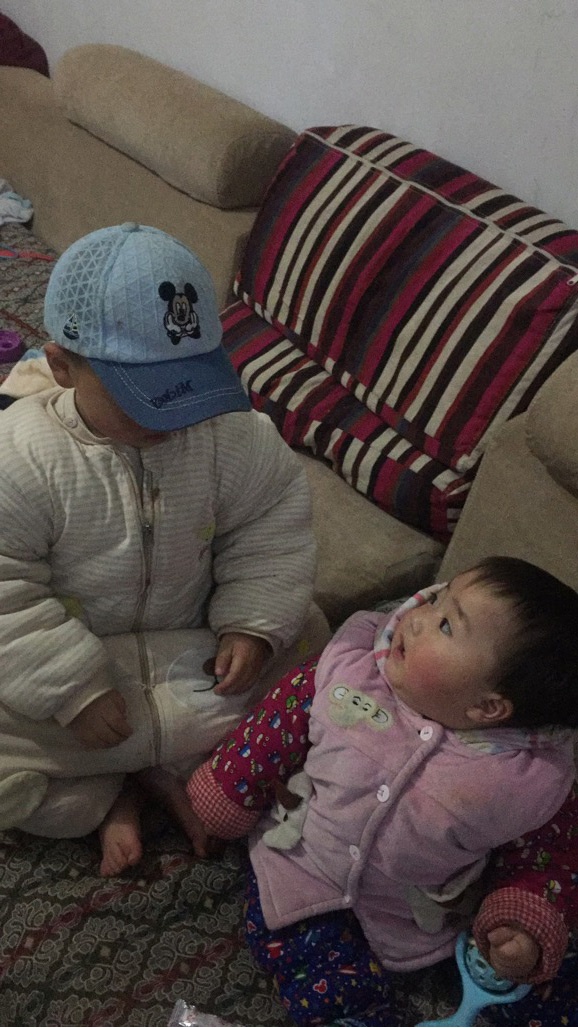 劉峰麗兒子照顧自己的妹妹